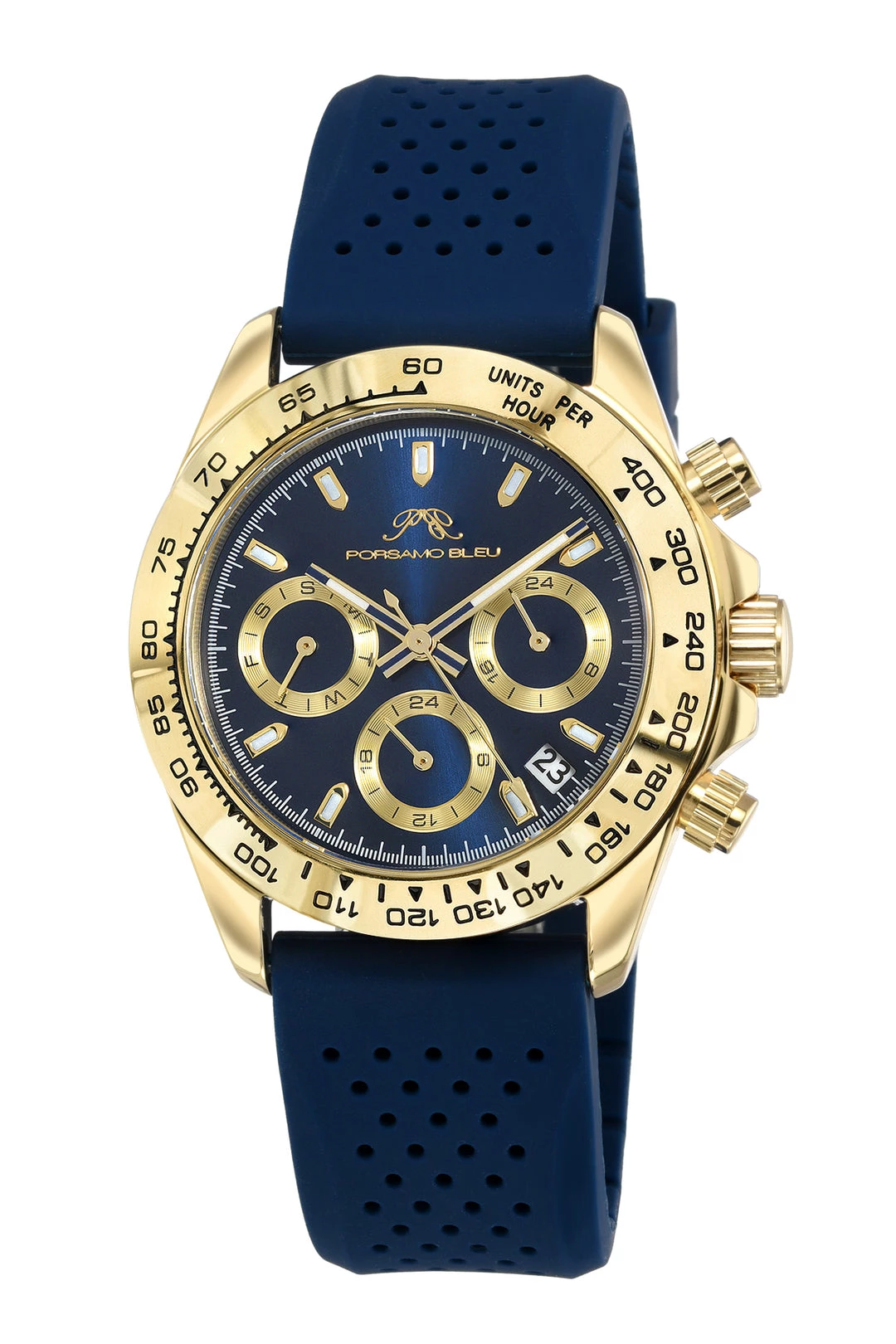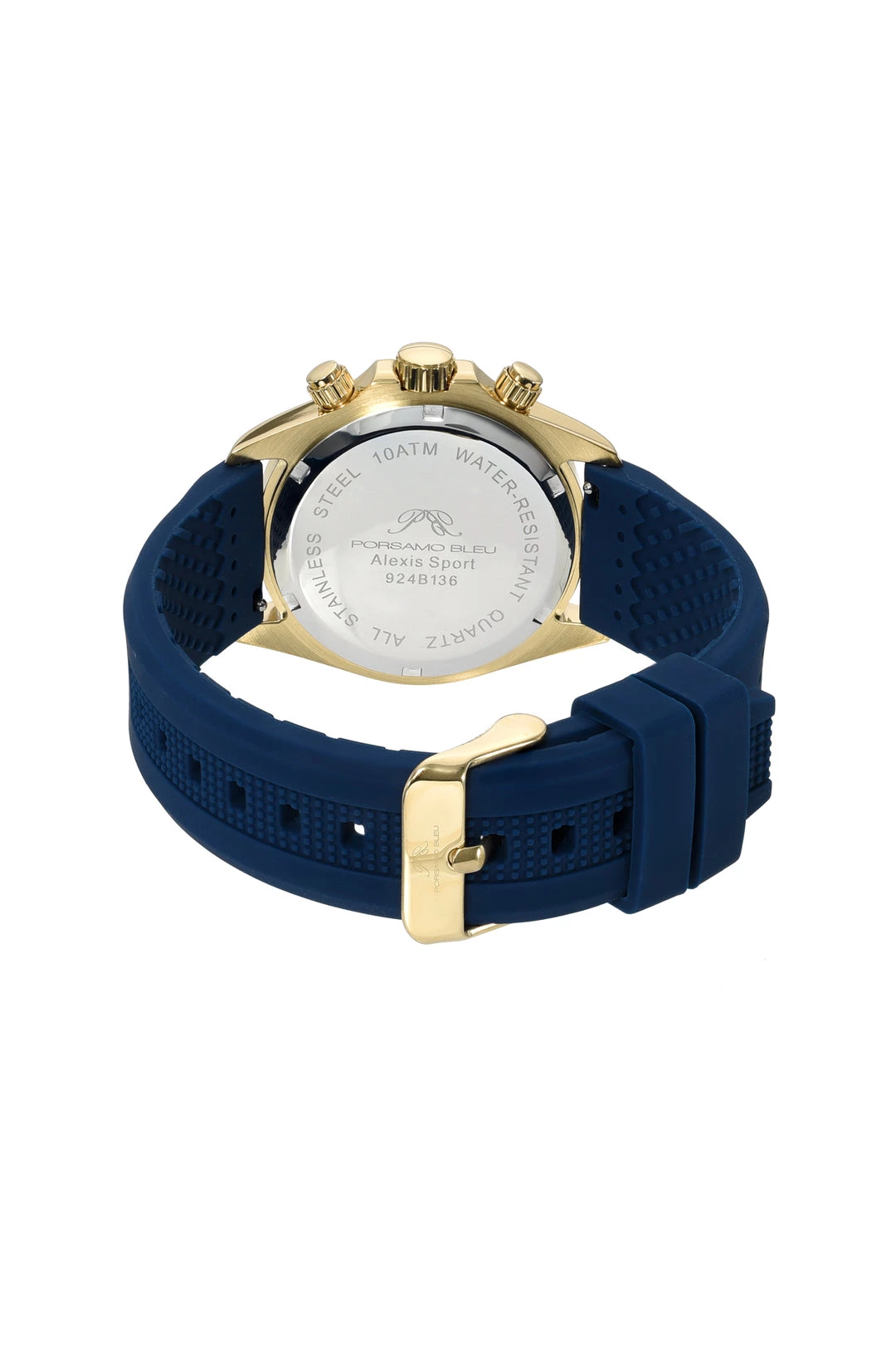 Porsamo Bleu Alexis Sport Ladies’ Sporty Multifunction Watch With Stainless Steel Case And Silicone Strap, Gold tone & Blue