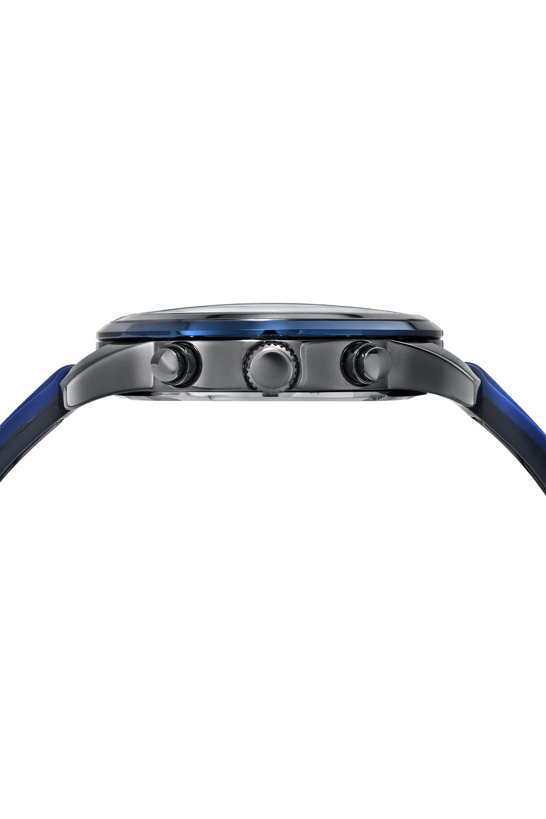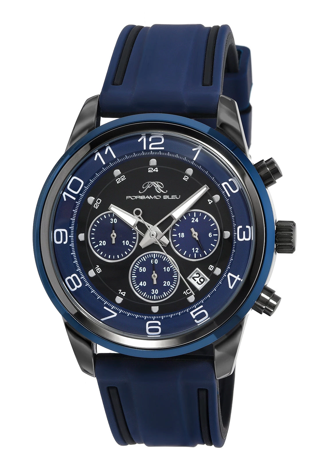 Porsamo Bleu Arthur Men’S Chronograph Watch With Stainless Steel Case And Double Layered Silicone Strap; Date Window Between 4 And 5 O’Clock; Gunmetal & Blue