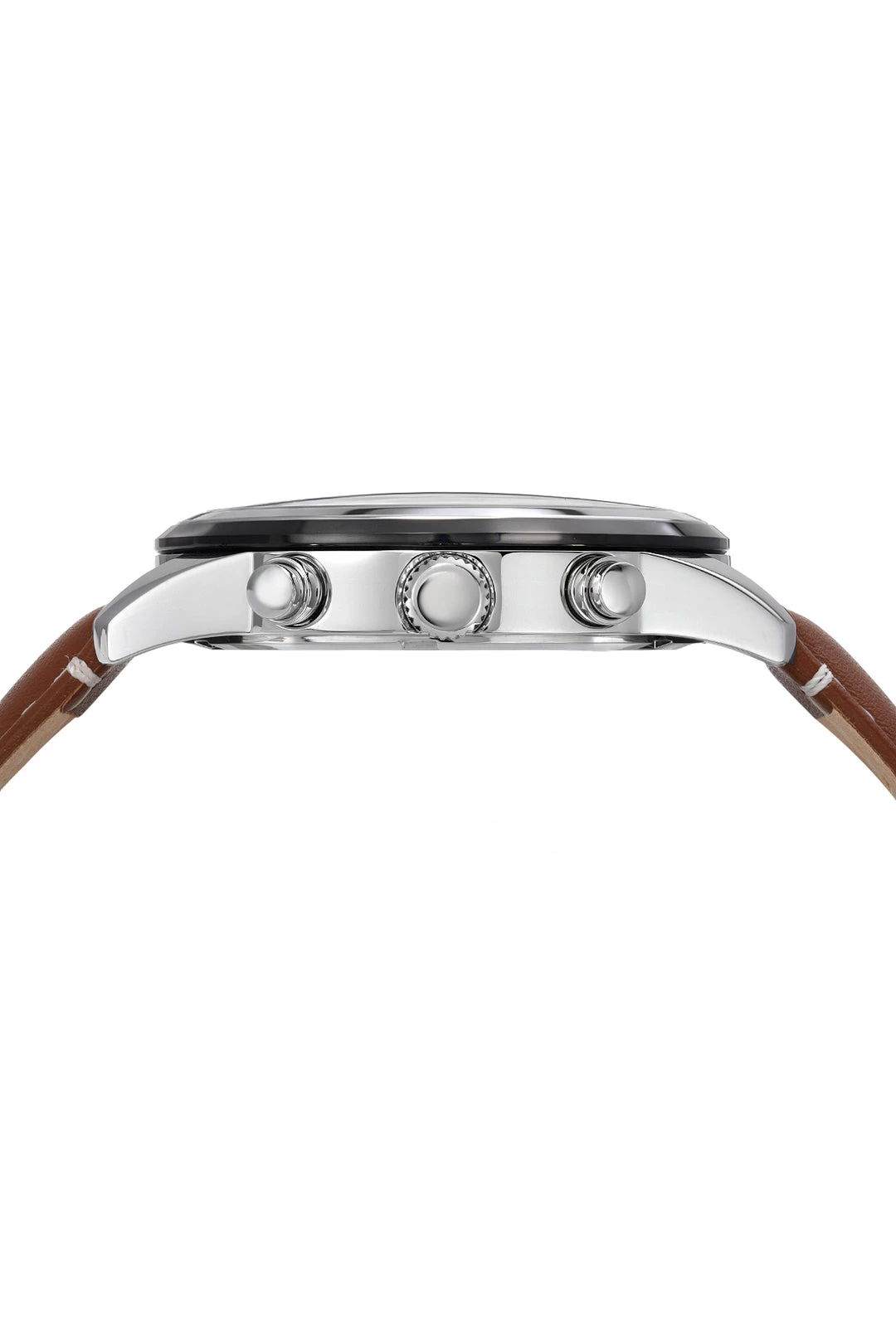 Porsamo Bleu Arthur Men’S Chronograph Watch With Stainless Steel Case And Geniune Leather Band; Date Window Between 4 And 5 O’Clock; Silver Tone & Brown