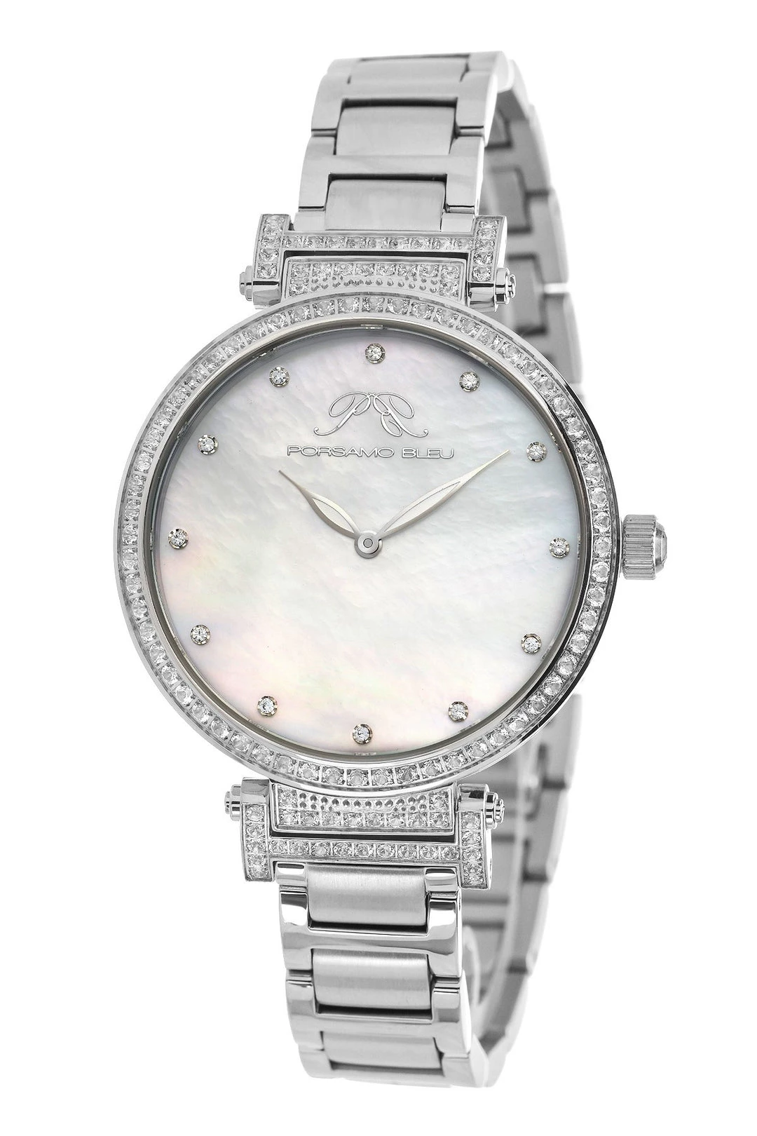 Porsamo Bleu Chantal Ladies’ Watch With Stainless Steel Case And Bracelet, Mother Of Pearl Dial With White Topaz Gemstones; Silver Tone