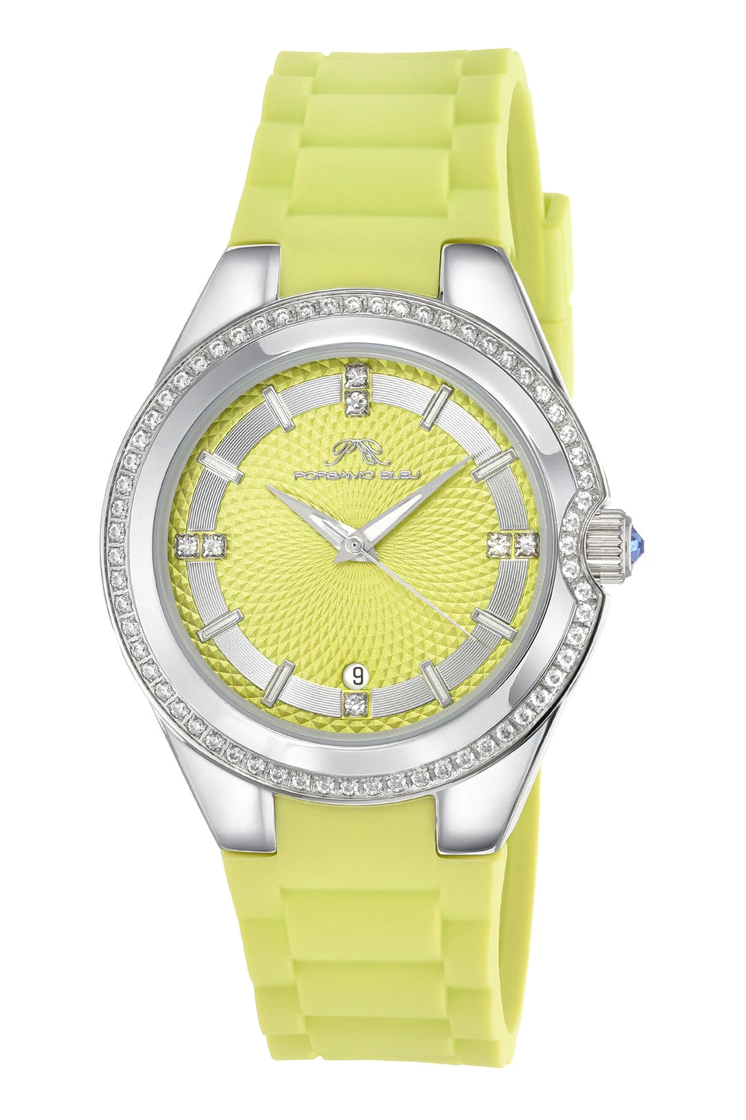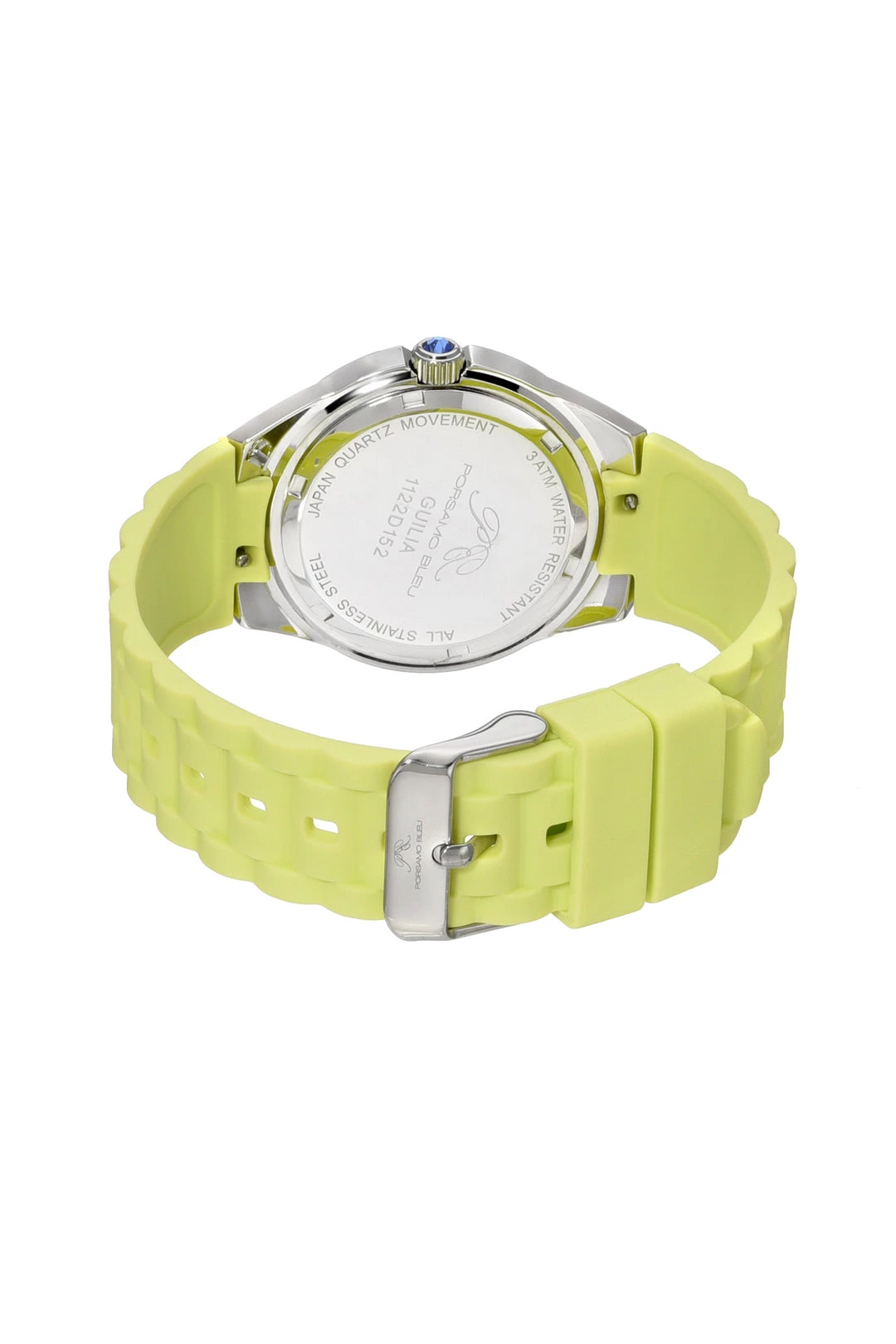 Porsamo Bleu Guilia Ladies’ Watch With Stainless Steel Case; Lime Green Guilloche Dial; Interchangeable Lime Green And White Silicone Straps; Silver Tone; White And Lime Green