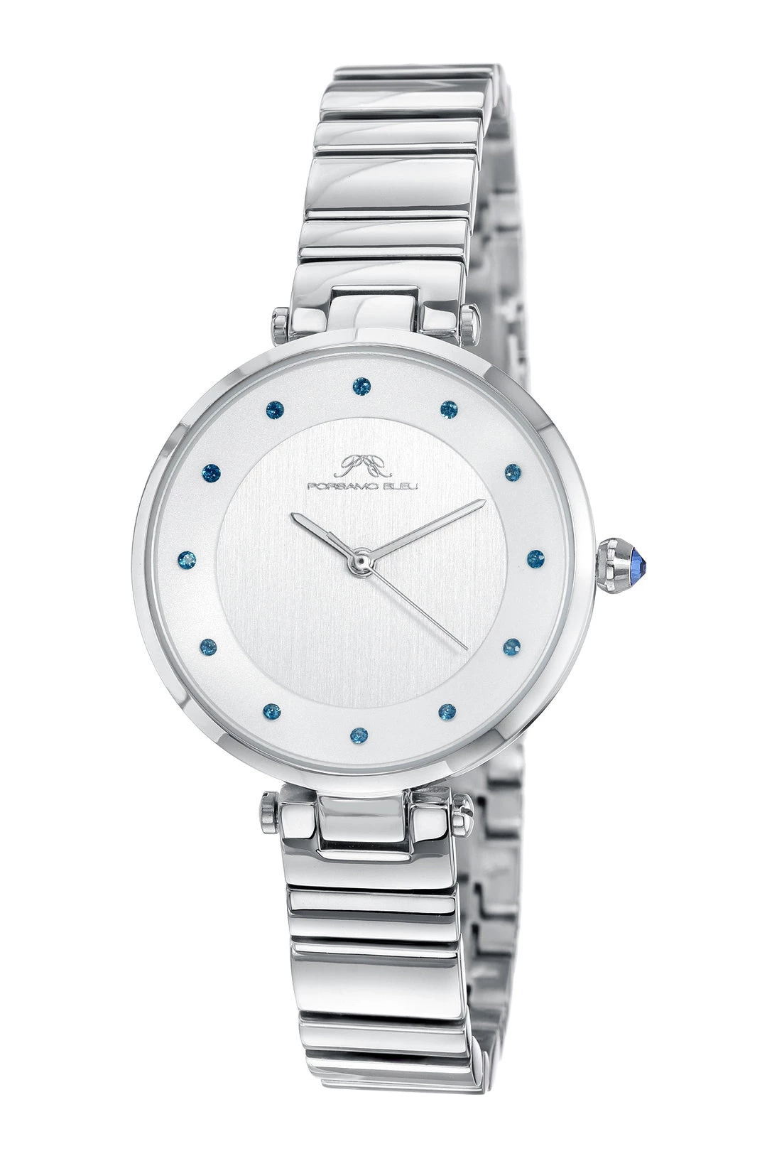 Porsamo Bleu Lilian Ladies’ Watch With Blue Topaz Hour Markers, Stainless Steel Case And Bracelet; Silver Tone