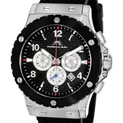 Porsamo Bleu Marcus Men’S Chronograph Watch With Stainless Steel Case And Textured Silicone Strap, Date Window Between 4 And 5 O’Clock; Silver Tone & Black