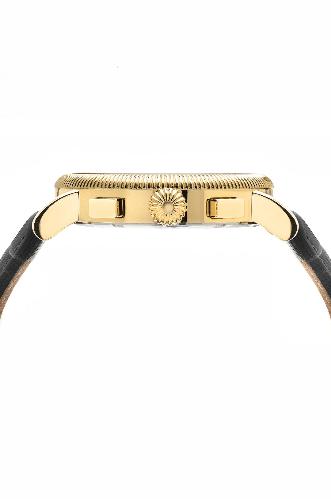 Porsamo Bleu Phileas Men’S Chronoghraph Tachymeter Watch With Stainless Steel Case And Genuine Leather Strap, Date Window Between 4 And 5 O’Clock; Gold Tone & Black