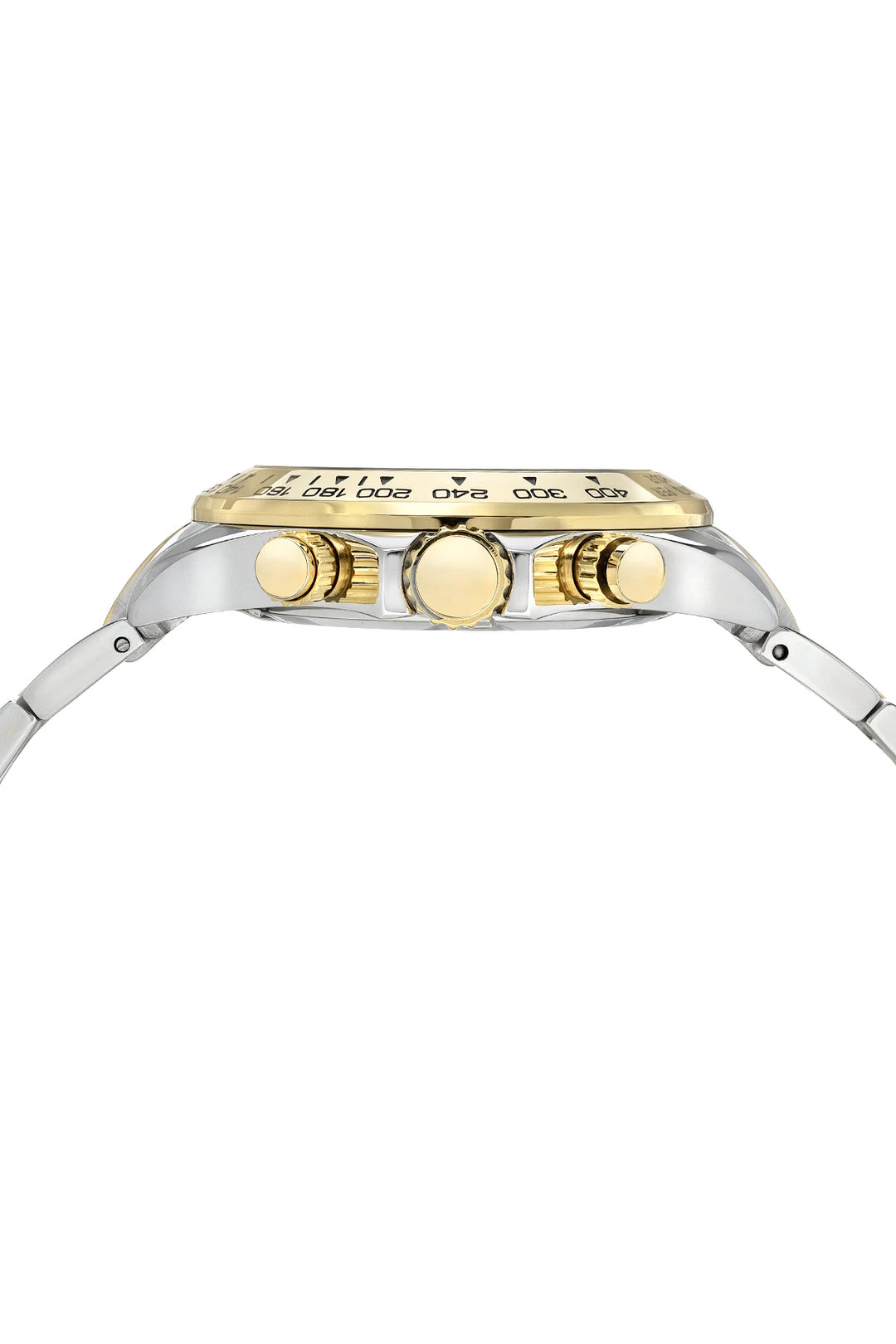 Porsamo Bleu Preston Men’S Multifunction Watch With Stainless Steel Case And Bracelet; Date Window Between 4 And 5 O’Clock; Two Tone, Gold, Silver & White