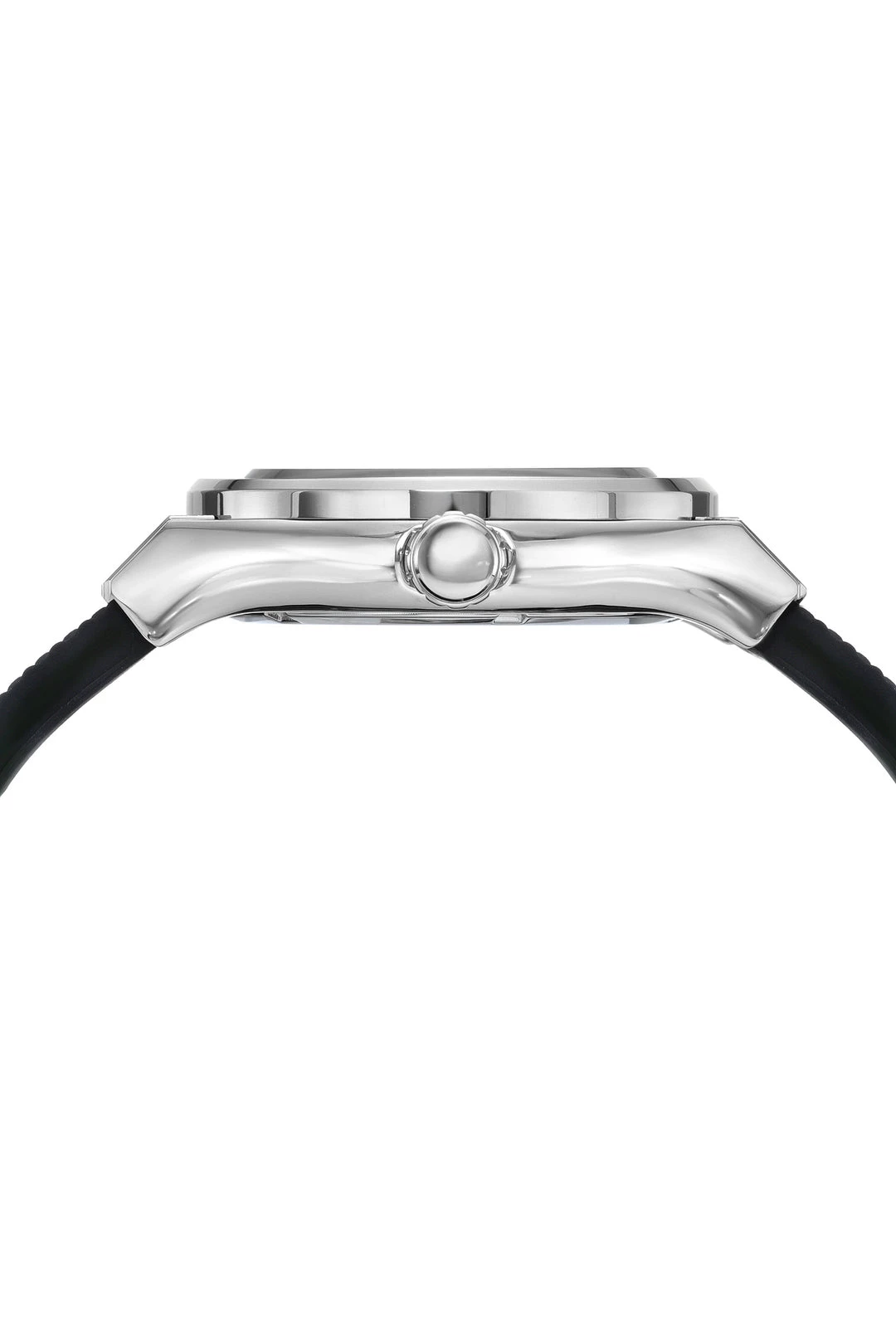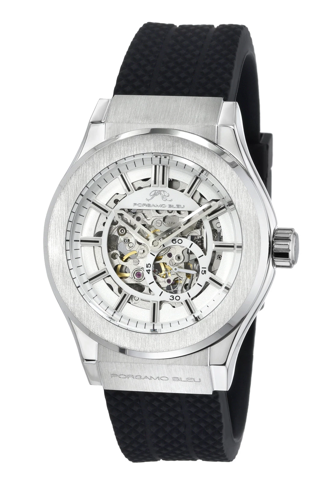 Porsamo Bleu Cruz Men’s Automatic Watch With Stainless Steel Case; Black Silicone Strap; Skeleton Dial; Silver Tone And Black