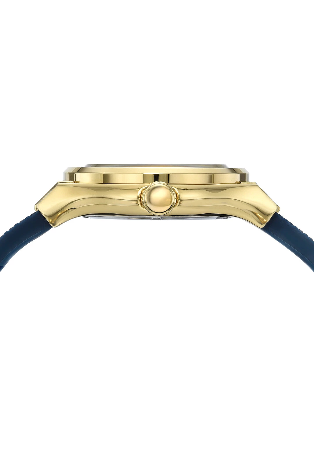 Porsamo Bleu Cruz Men’s Automatic Watch With Stainless Steel Case; Blue Silicone Strap; Skeleton Dial; Gold Tone And Blue
