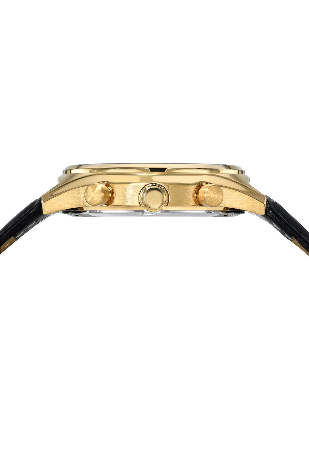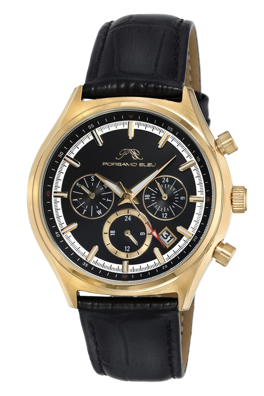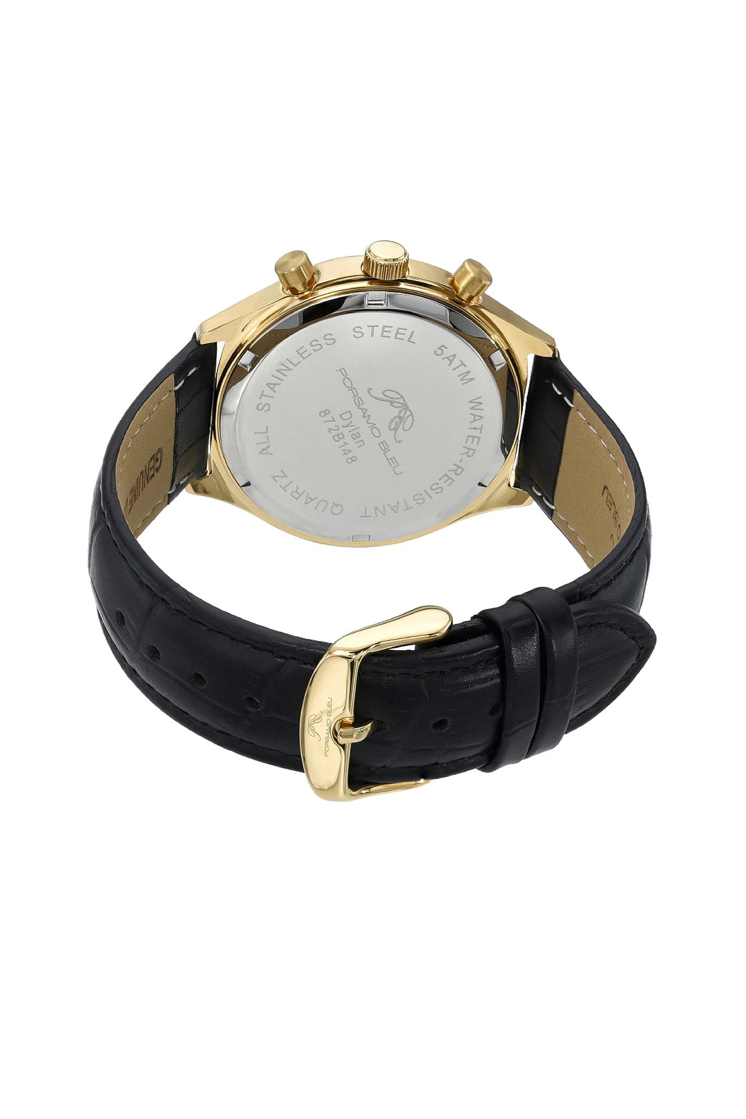 Porsamo Bleu Dylan Men’s Multifunction Watch With Stainless Steel Case And Genuine Leather Band; Gold And Black