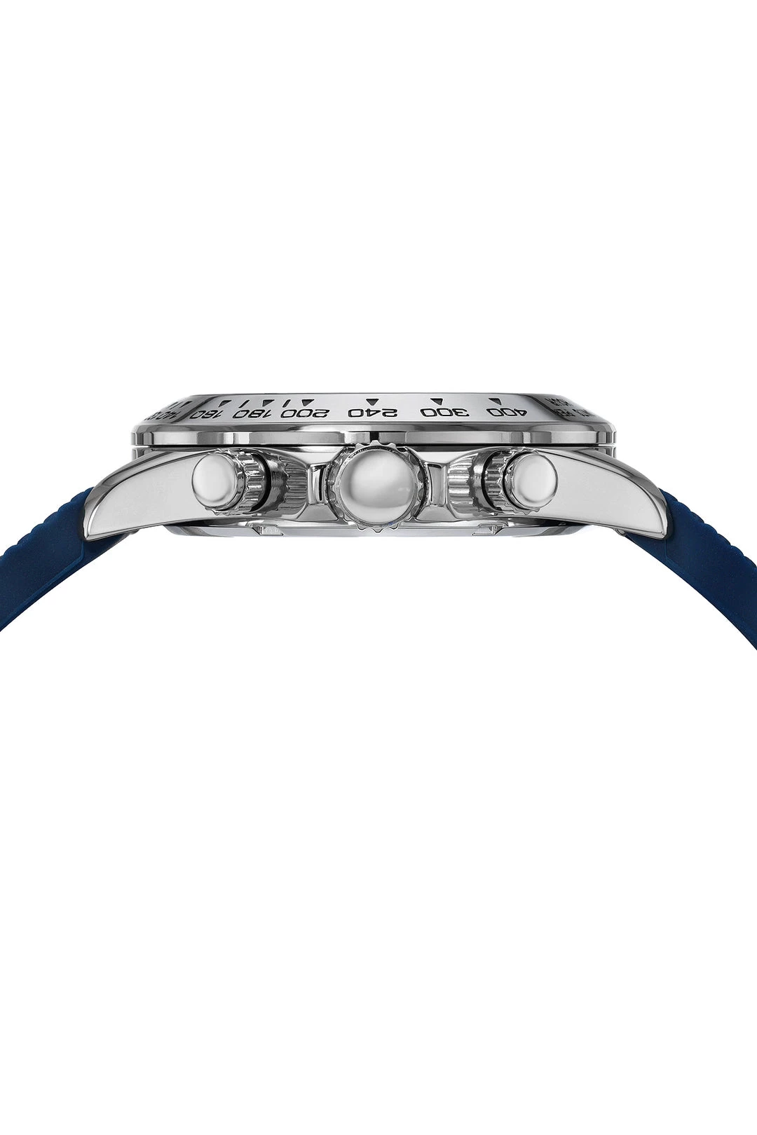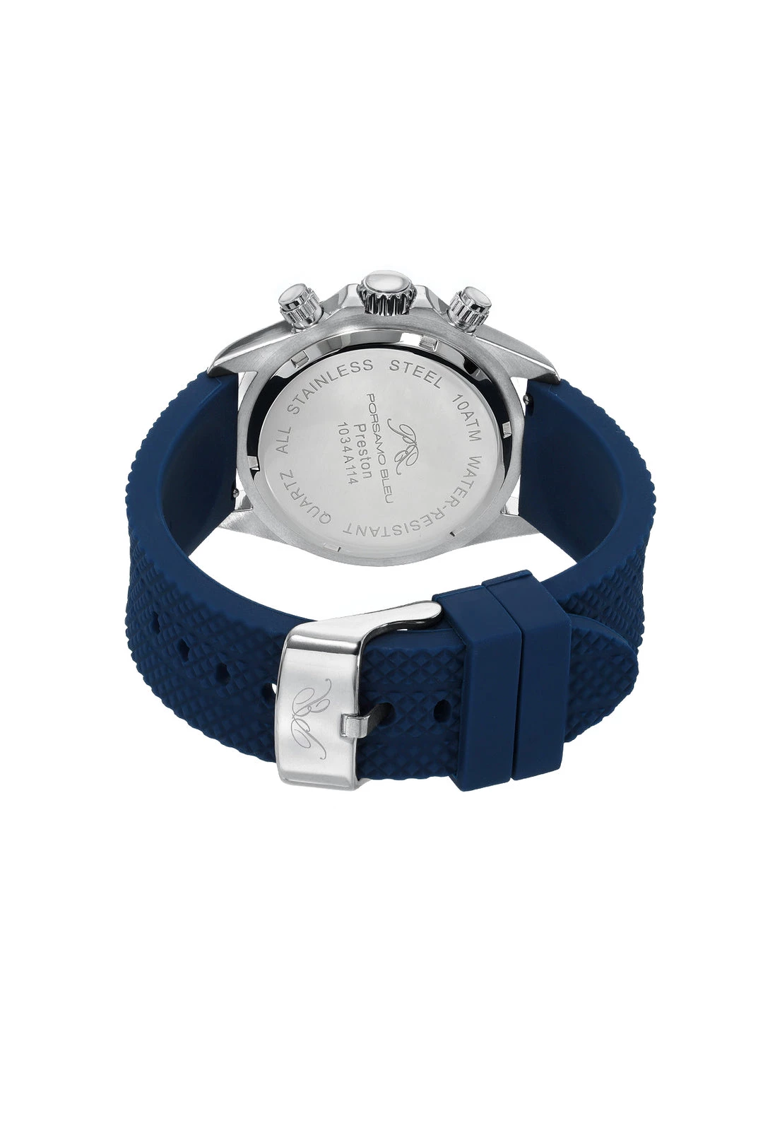 Porsamo Bleu Preston Sport Men’s Multifunction Watch With Stainless Steel Case And Blue Silicone Strap; Date Window Between 4 And 5 O’Clock; Silver Tone And Blue
