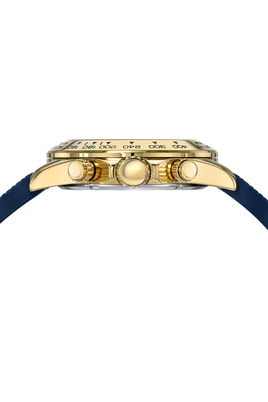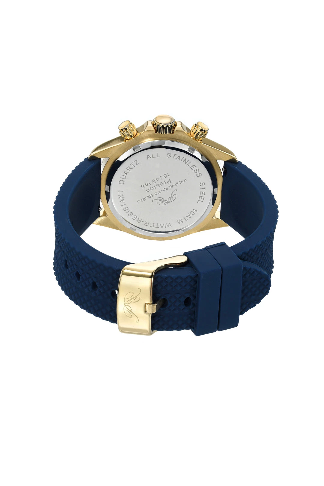 Porsamo Bleu Preston Sport Men’s Multifunction Watch With Stainless Steel Case And Blue Silicone Strap; Date Window Between 4 And 5 O’Clock; Gold Tone And Blue