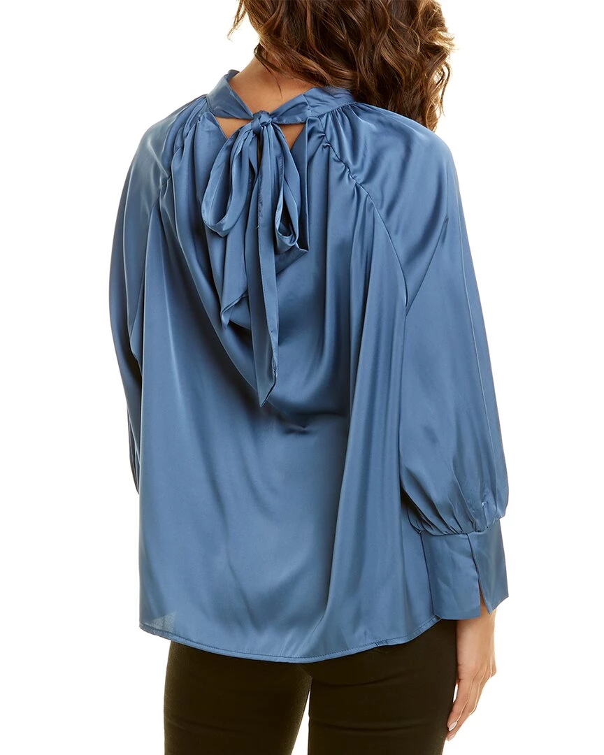 - Design Details – Satin Design, Raglan Sleeves, Button Cuffs, Tie Neck Detail