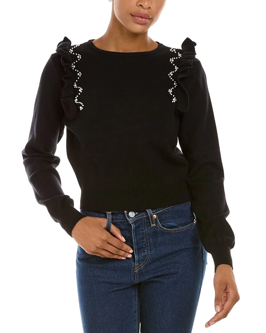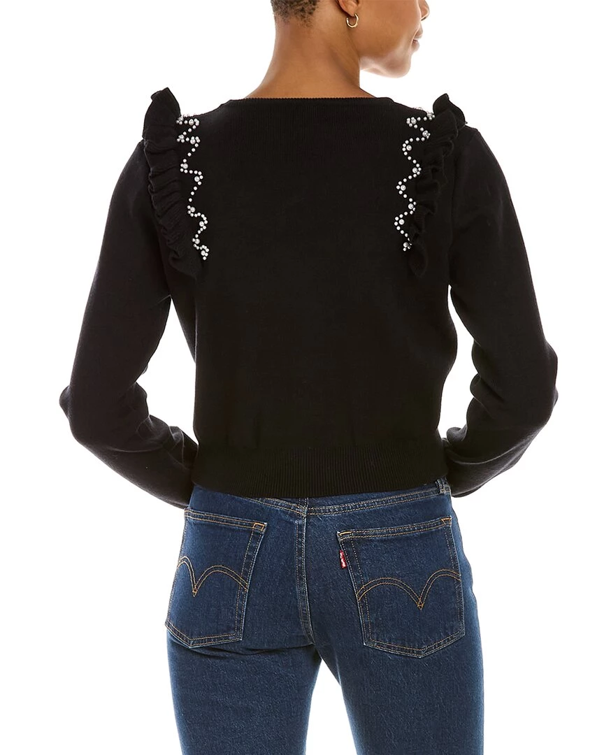 - Design Details – Faux Pearl Trim, Ruffled Shoulders, And Ribbed Trim