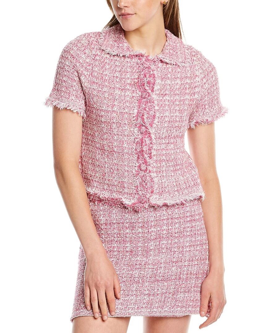 - Design Details – Metallic Tweed Design, Spread Collar, And Fringe Trim